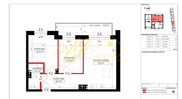 Powierzchnia użytkowa 58,50 m²